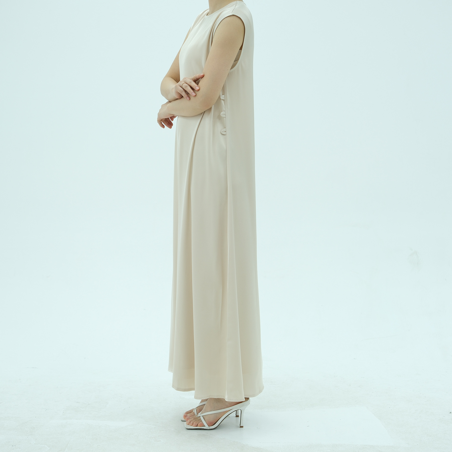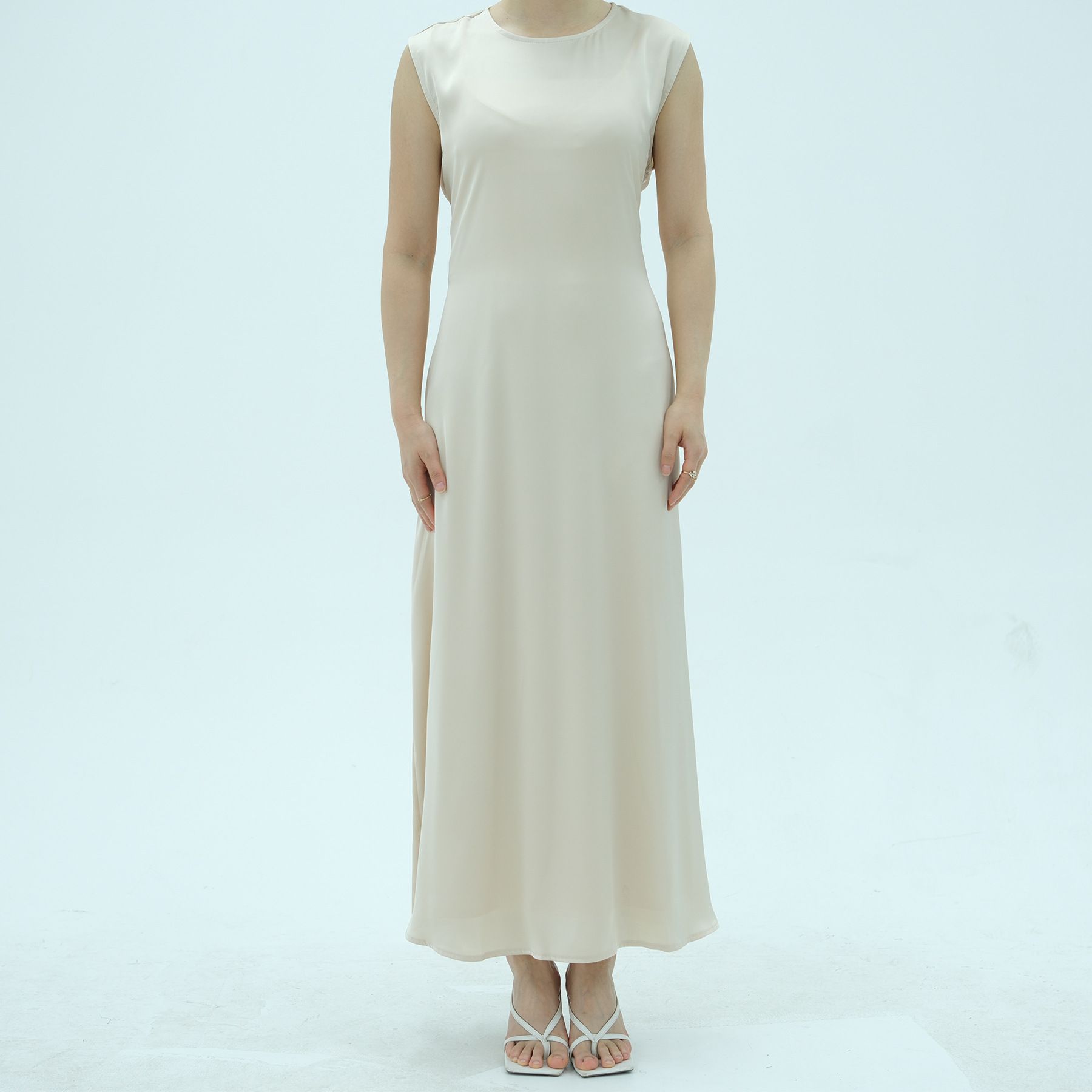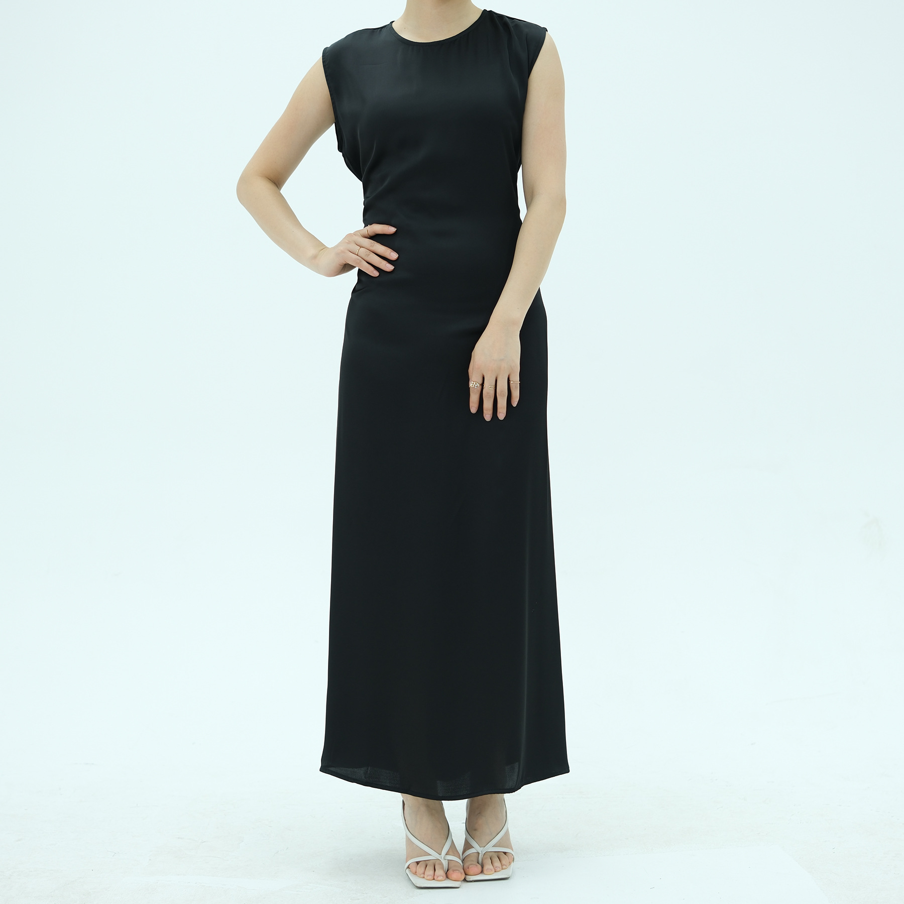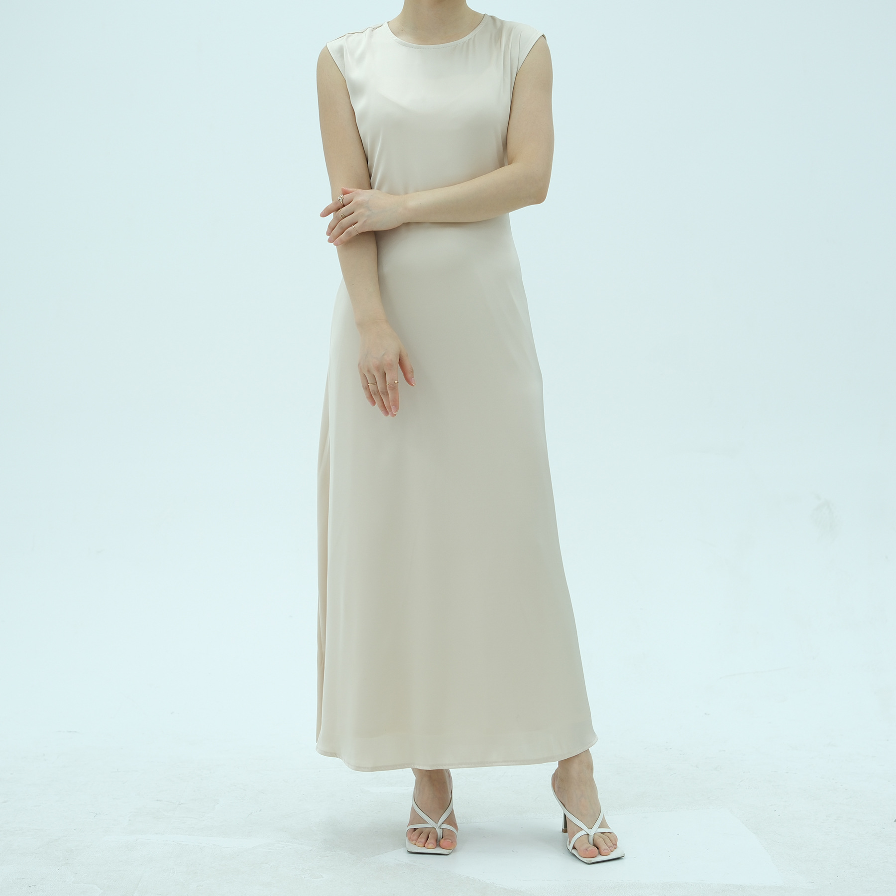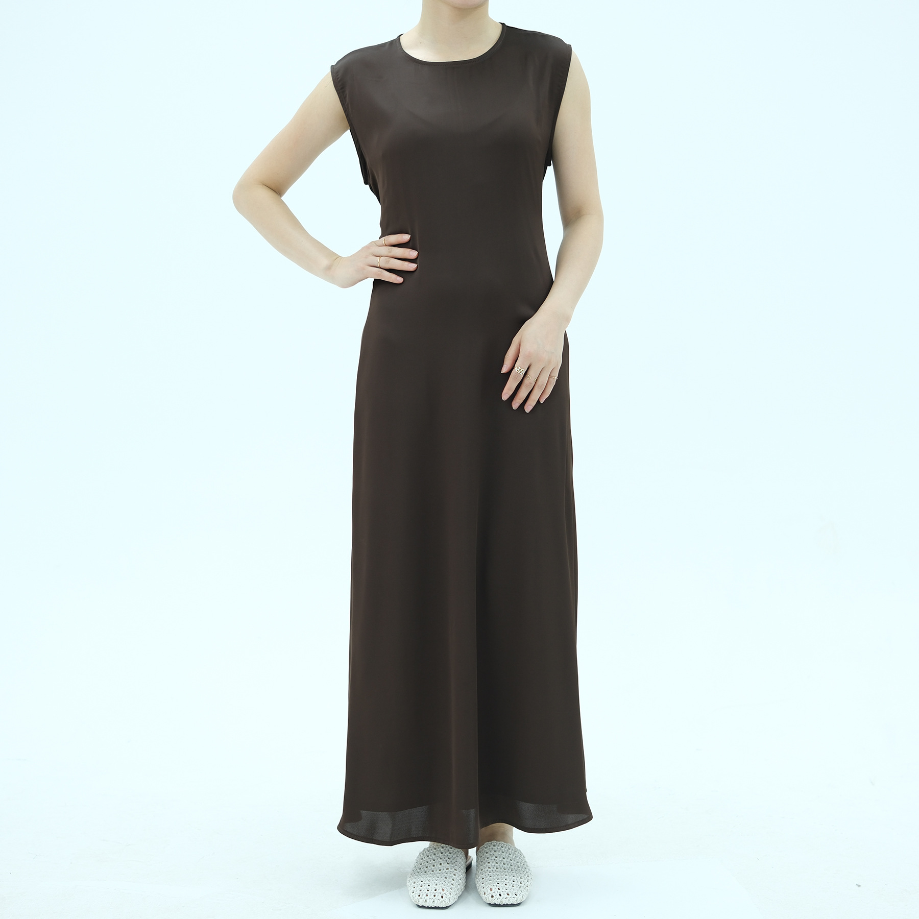 1996#2025 Women's Modest Sleeveless Satin Abaya Dress Basic Inner Slip Back Drawstring Belt Traditional Muslim Clothing