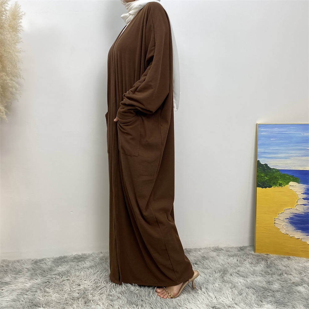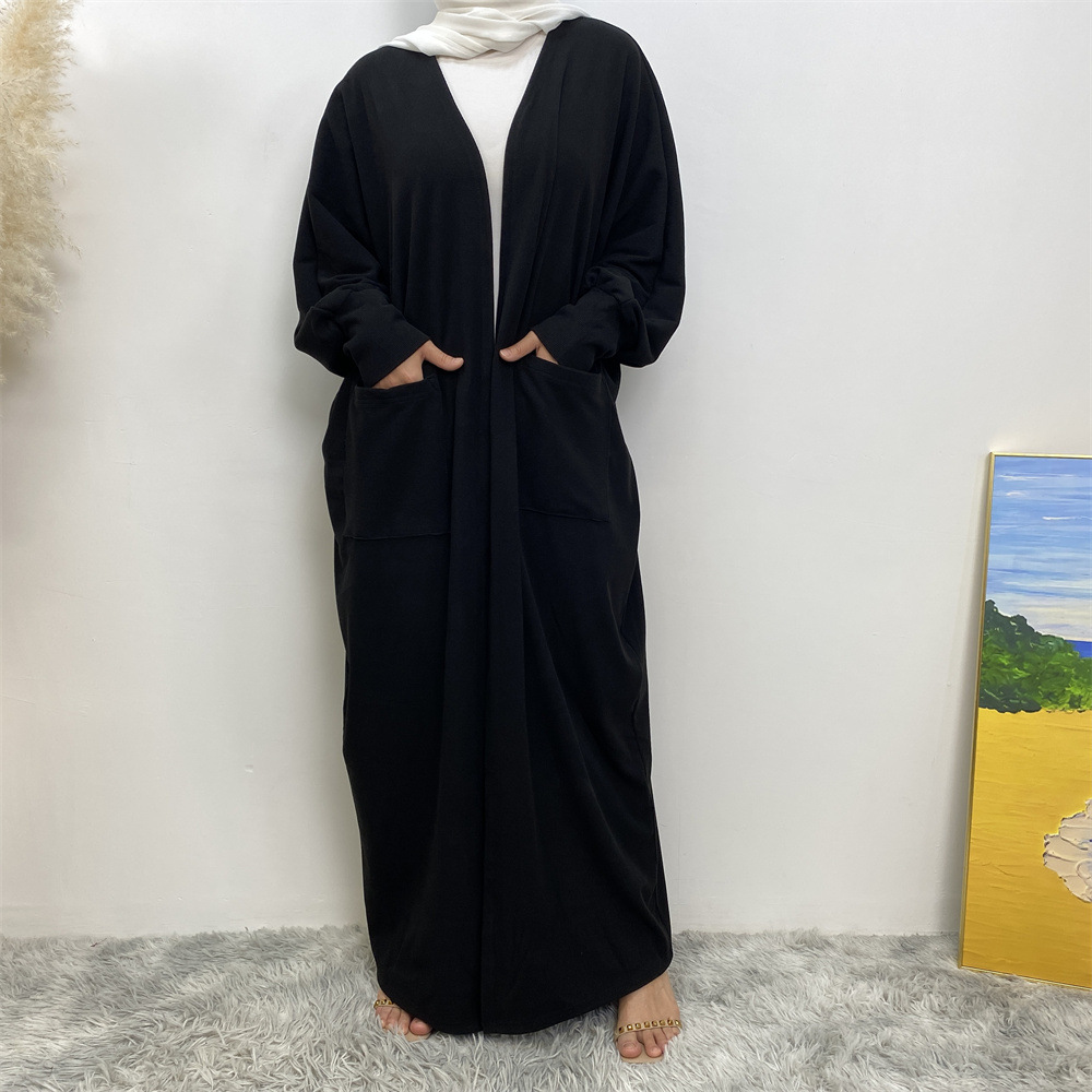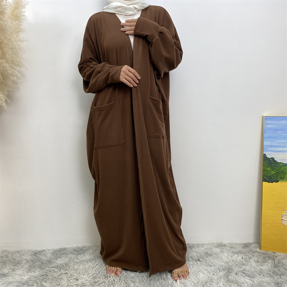 1997#New Fashion Cotton Autumn Winter Coat Cotton Side Pockets Open Abaya