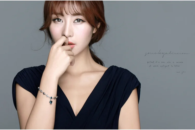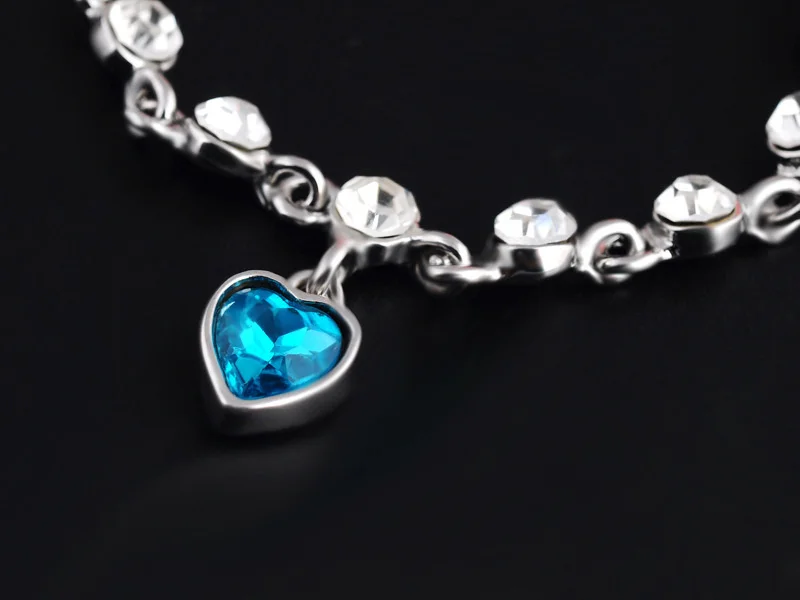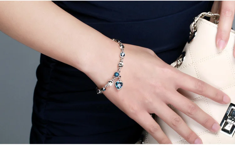 B29#925 Sterling Silver Heart Bracelets For Women Blue Sapphire