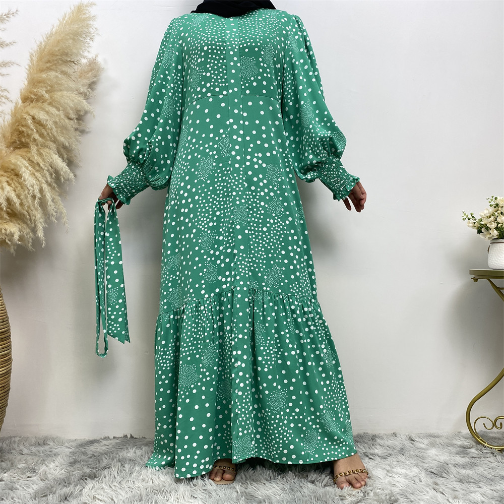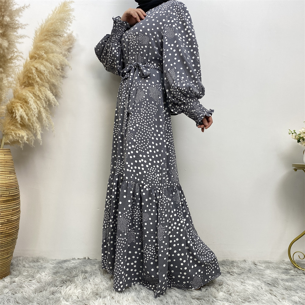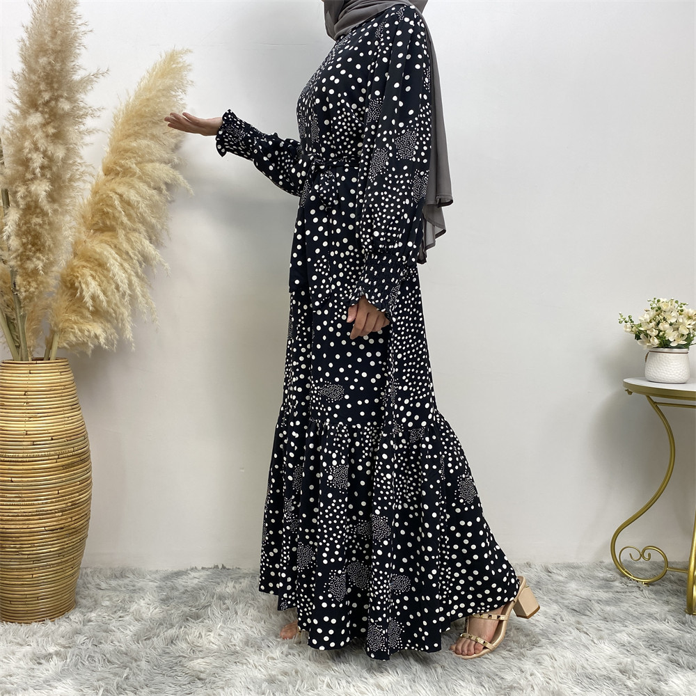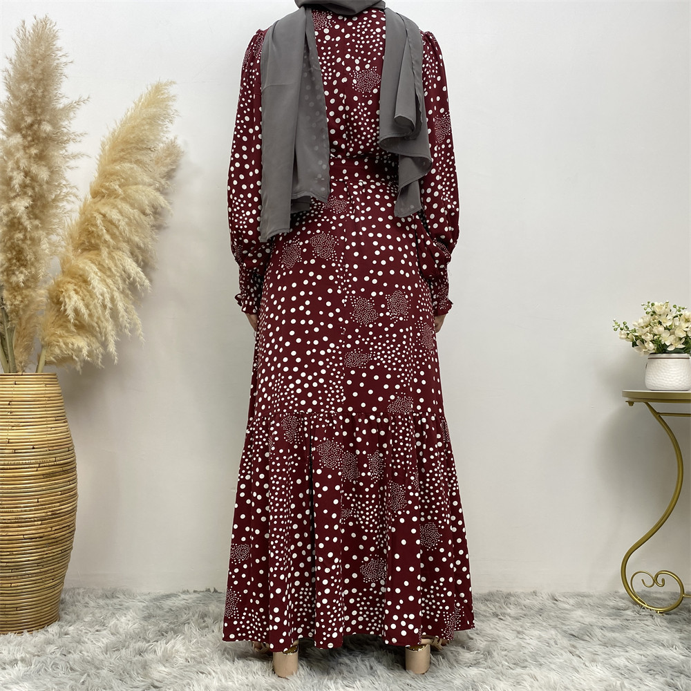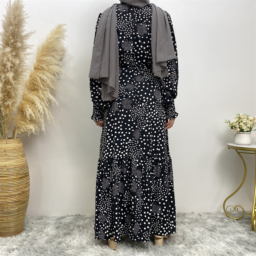 6541#Polka Dot Printed Maxi Dress Ladies Muslim Abaya Dresses Islamic Clothing