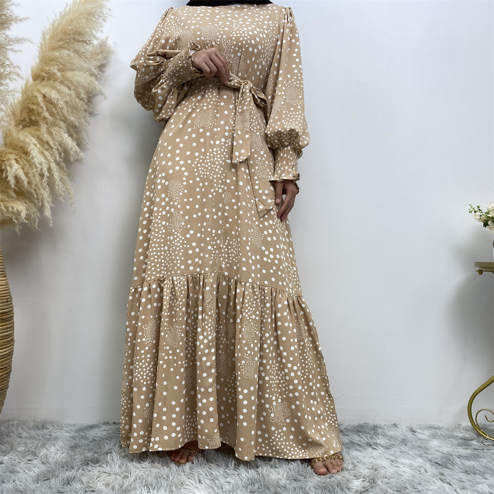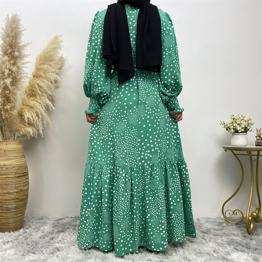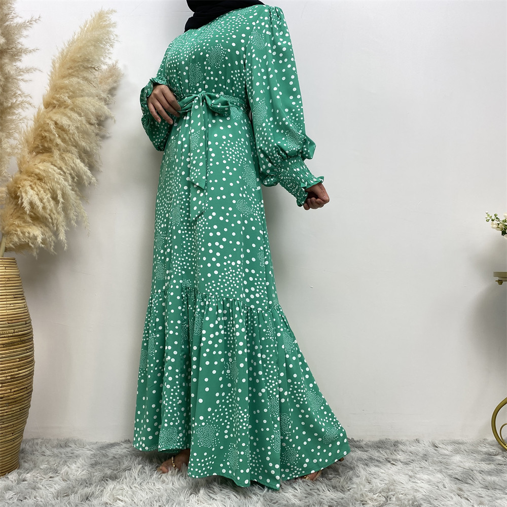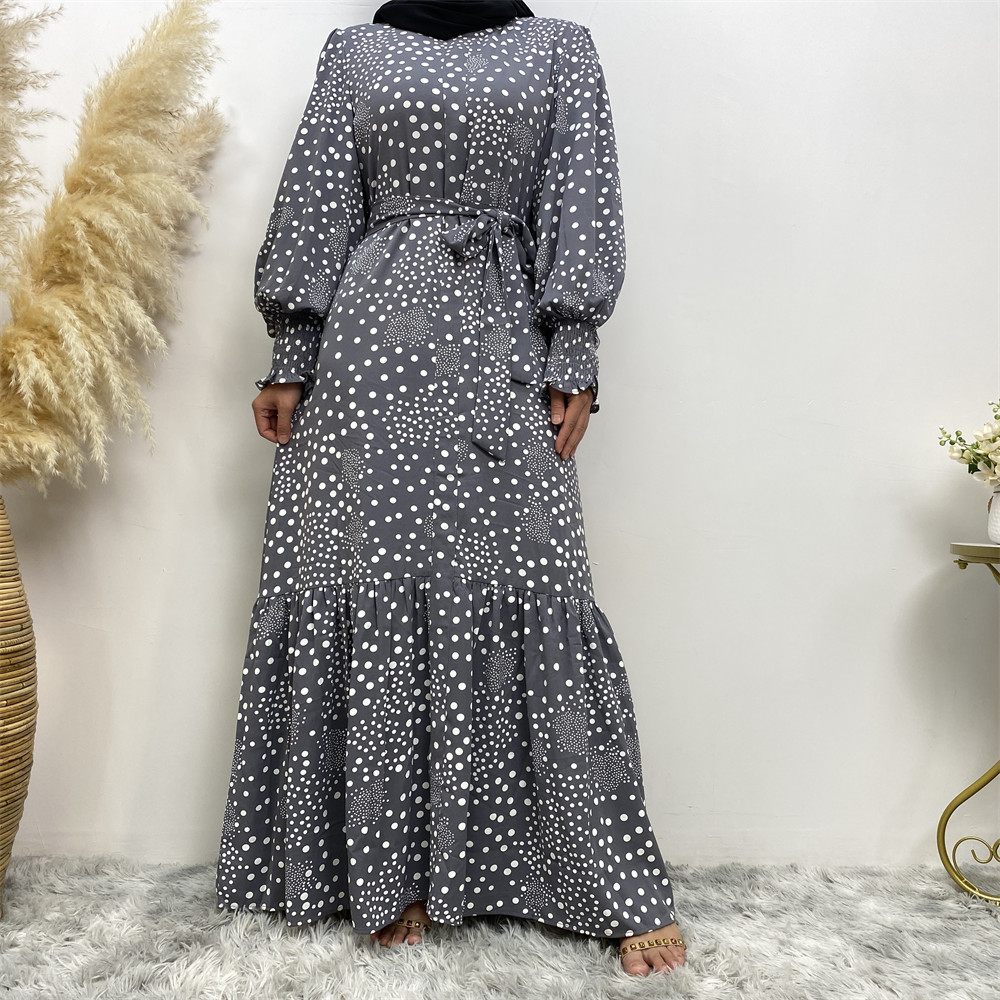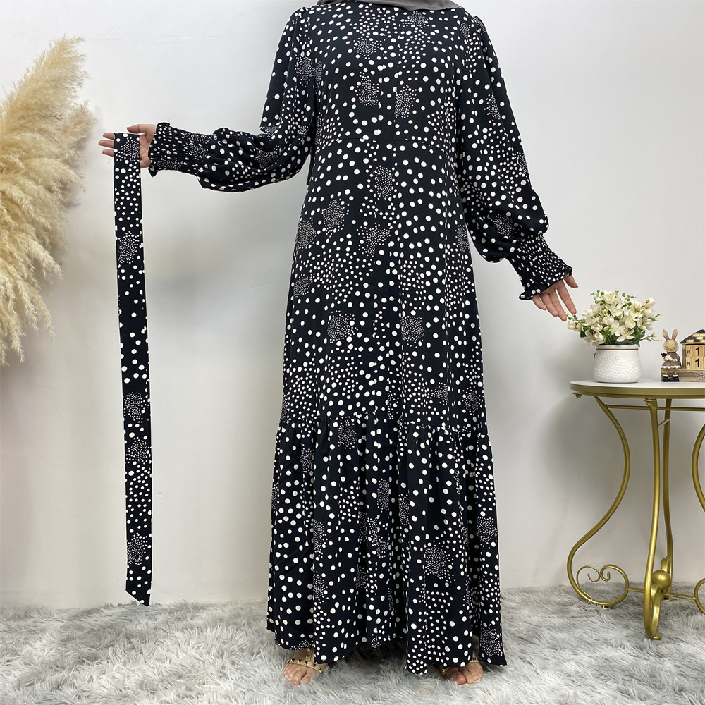 6541#Polka Dot Printed Maxi Dress Ladies Muslim Abaya Dresses Islamic Clothing