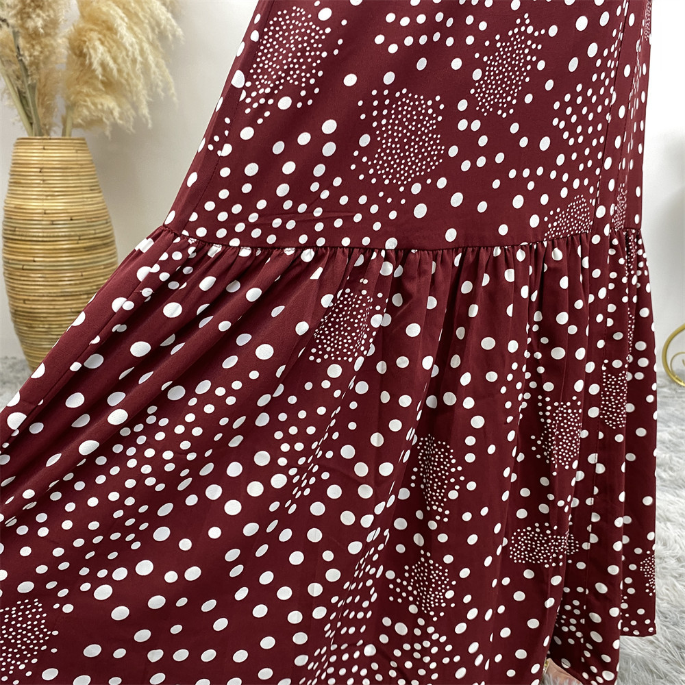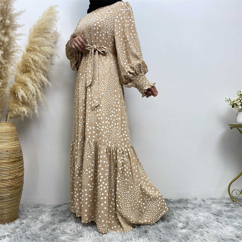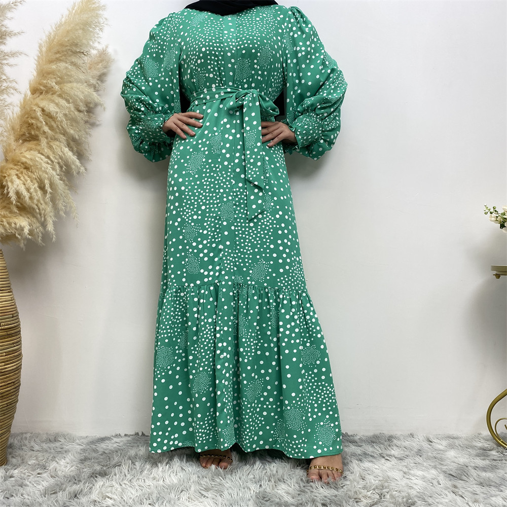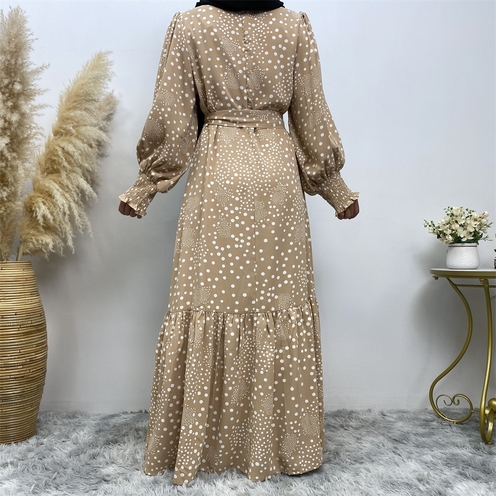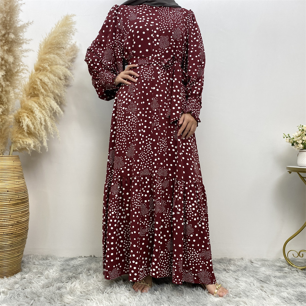 6541#Polka Dot Printed Maxi Dress Ladies Muslim Abaya Dresses Islamic Clothing